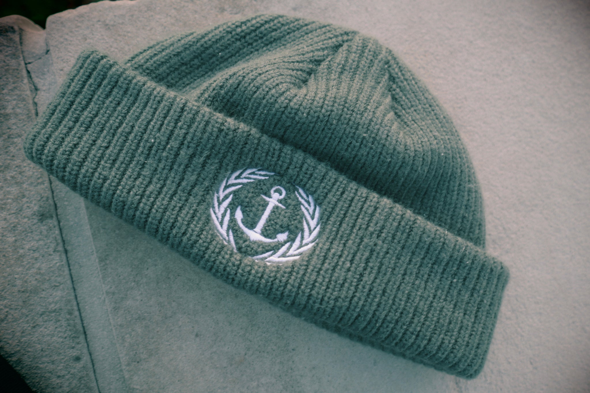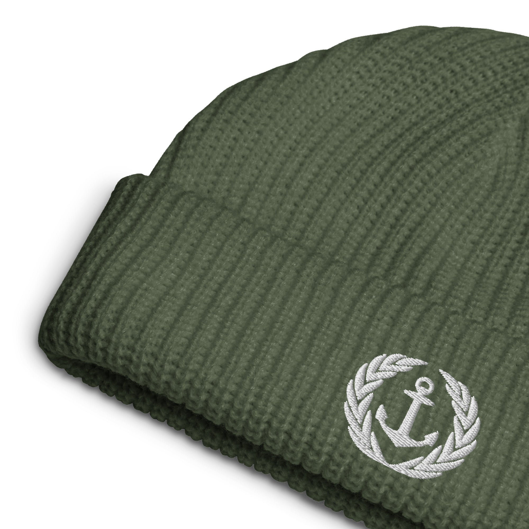 Fisherman-style beanie. Thick, ribbed knit.